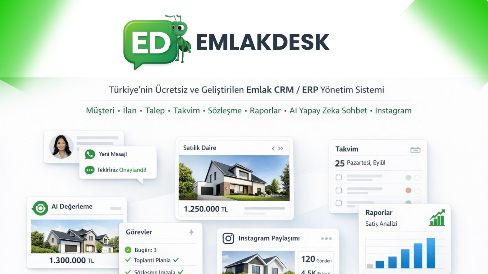 EmlakDesk, emlak ofisleri, gayrimenkul firmaları ve inşaat şirketleri için geliştirilmiş bulut tabanlı bir Emlak CRM